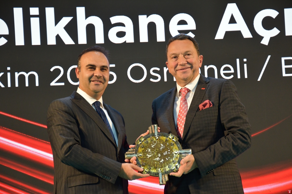 Konuşmanın ardından Hasçelik Yönetim Kurulu Başkanı Adnan Naci Faydasıçok, Bakan Kacır’a hediye takdim etti.