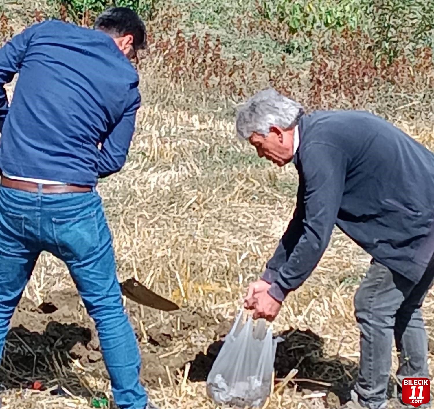 İlçeye tesis edilecek olan yaban mersini bahçesinde dikim öncesinde İlçe Tarım ve Orman Müdürlüğü teknik personeli tarafından toprak analizi için numune alma işlemi gerçekleştirildi. – İHA