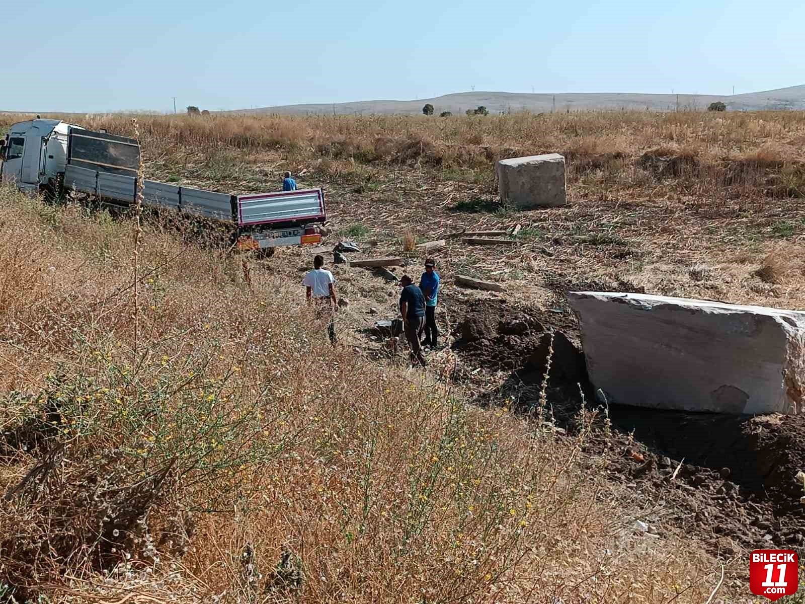 Öte yandan, kaza esnasında mermer blokların yola değil de araziye düşmesi ise yaşanabilecek bir facianın önüne geçti. – İHA