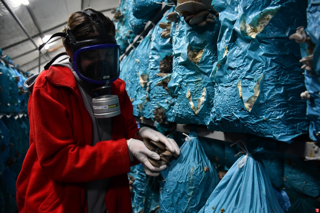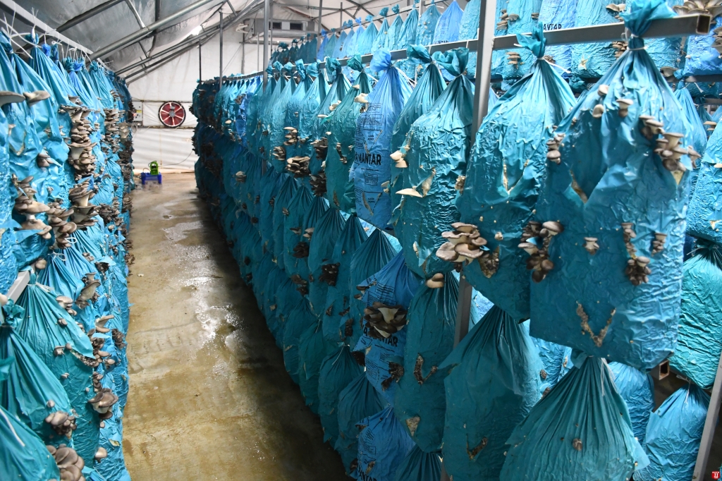 Proje kapsamında yüzde 100 hibe desteği alan çift, 110 metrekare kapalı alana sahip istiridye mantarı üretim tesisi inşa etti, içine yaklaşık 8 ton kompost (mantar üretiminde kullanılan, bitkisel ve hayvansal atıkların nemli ve oksijenli ortamda bozularak dönüştüğü organik gübre) ile iklimlendirme ekipmanları yerleştirdi.