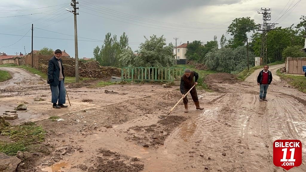 Sel baskının ardından Bolvadin Köylere Hizmet Götürme Birliği tarafından iş makineleri ile köyde temizlik çalışması başlatıldı. – İHA