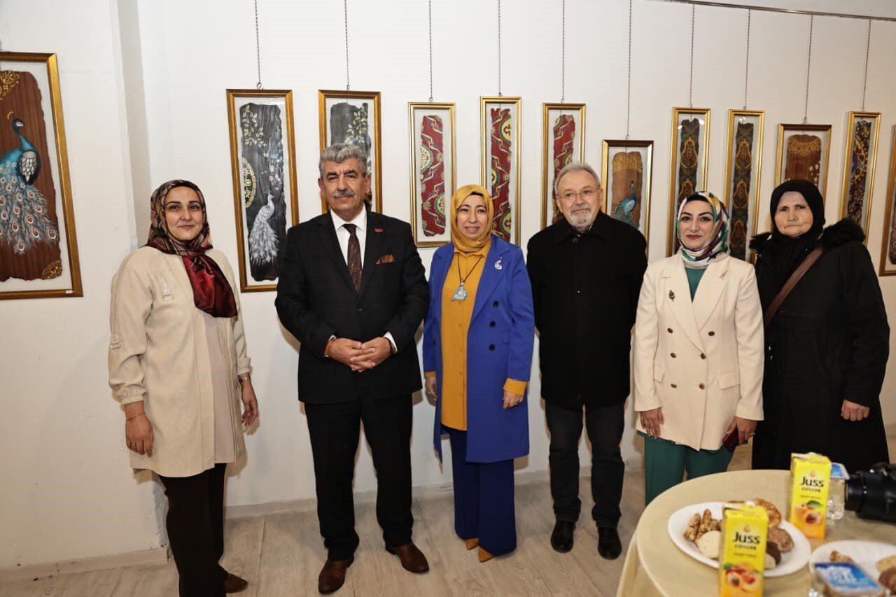 Serginin açılışını gerçekleştiren Başkan Yardımcısı Abdullah Damcı, eserleri inceleyerek Sibel Temelkıran’dan bilgiler aldı.