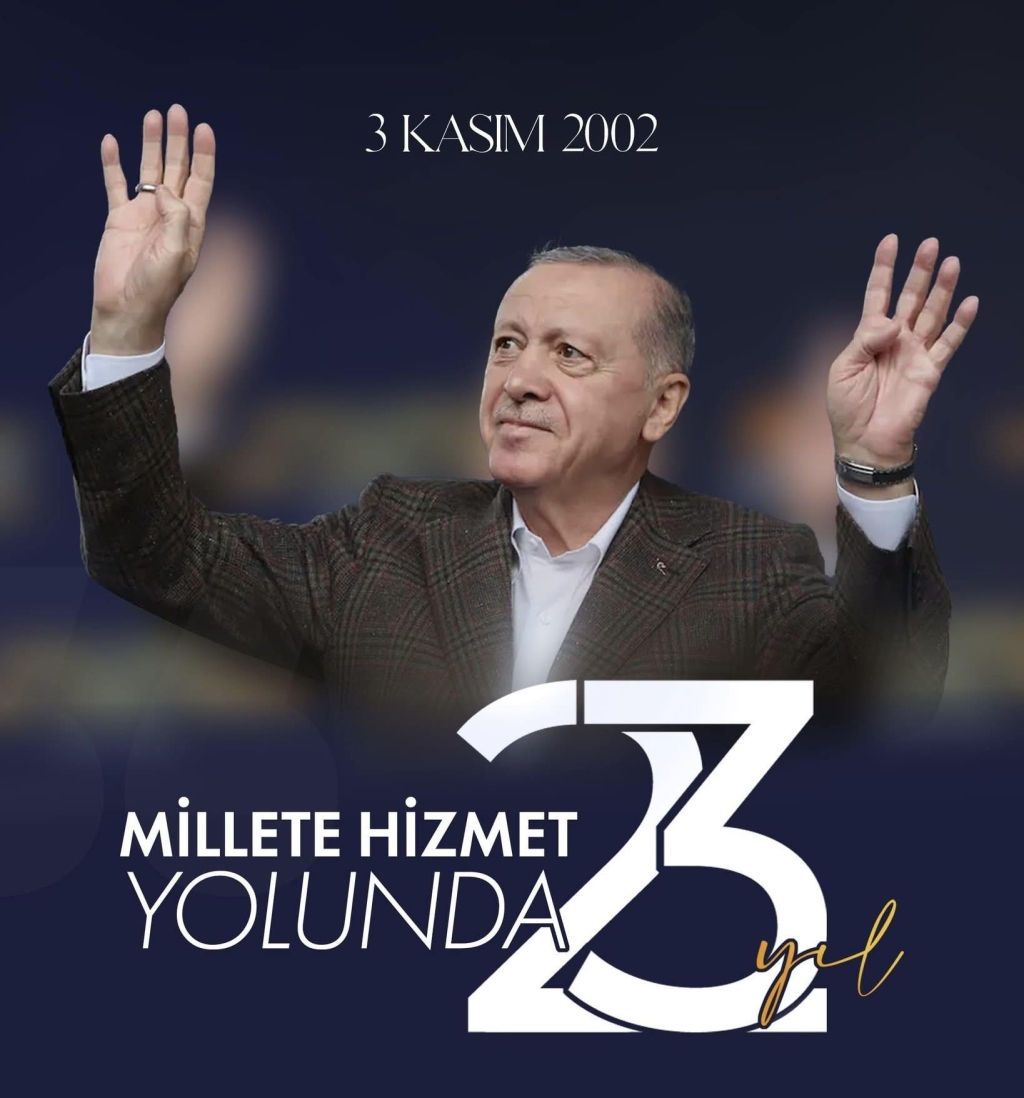 “23 Yıl önce bugün, Türkiye yepyeni bir döneme adım attı. Milletin sözü, milletin iradesi, milletin iktidarı hakim oldu. 3 Kasım sadece bir tarih değil; bir milattır. Umudun, icraatın ve kararlılığın adı olan AK Parti, 23 yıldır millet için çalışmaya devam ediyor. Cumhurbaşkanımız Sayın Recep Tayyip Erdoğan’ın liderliğinde; aynı inançla, aynı azimle yeni hedeflere, yeni zaferlere,Türkiye Yüz Yılına yürüyoruz.”