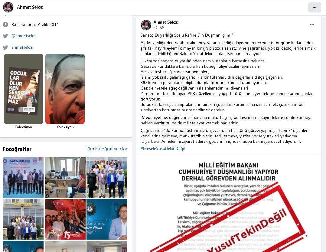Bazı sanatçıların Milli Eğitim Bakanı Yusuf Tekin’in görevden alınmasını istemesine yönelik Bilecik Eğitim Bir Sen Başkanı Ahmet Selöz tepki gösterdi.
