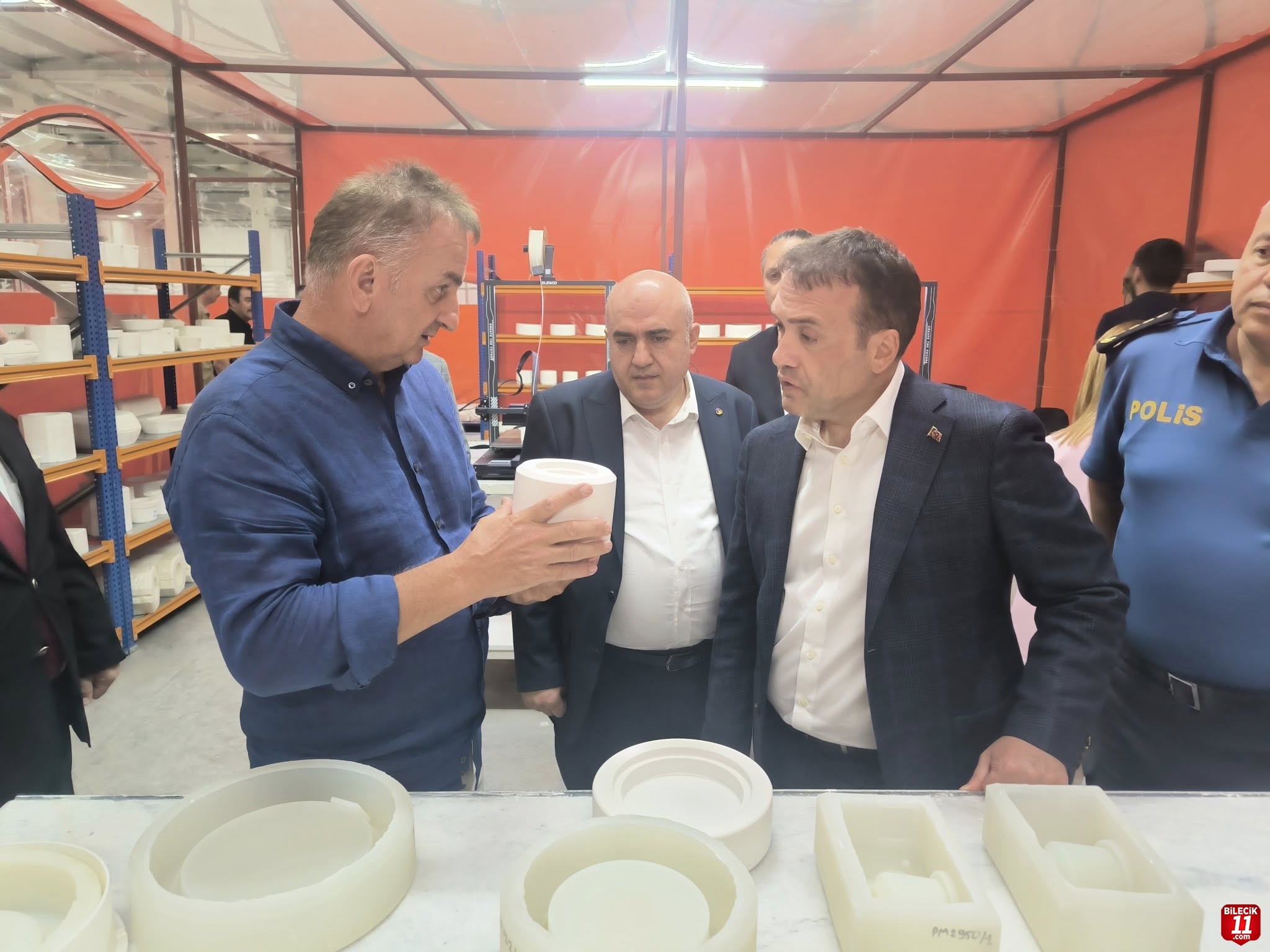 Bilecik Valisi Faik Oktay Sözer, Bilecik Ticaret ve Sanayi Odası Yönetim Kurulu Başkanı Mehmet Ergün, Bilecik İl Emniyet Müdürü Hakan Yılmaz, Pazaryeri Belediye Başkanı Zekiye Tekin ve Bilecik Sanayi ve Teknoloji İl Müdürü Hamdi İğdeci, Teknolojik Seramik Fabrikası’nı ziyaret etti.