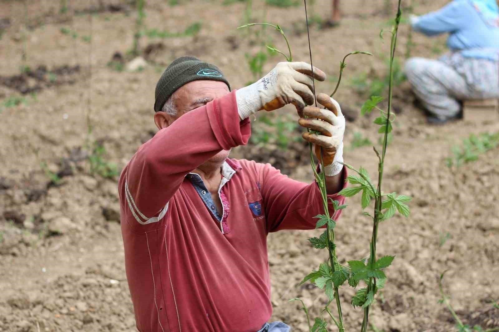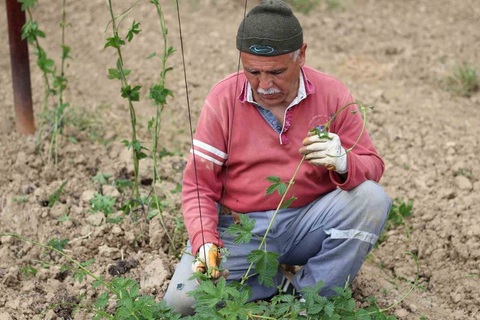 Türkiye’de sadece Bilecik’in Pazaryeri ilçesinde yetişen şerbetçiotu tarlalarında hummalı çalışma sürüyor.