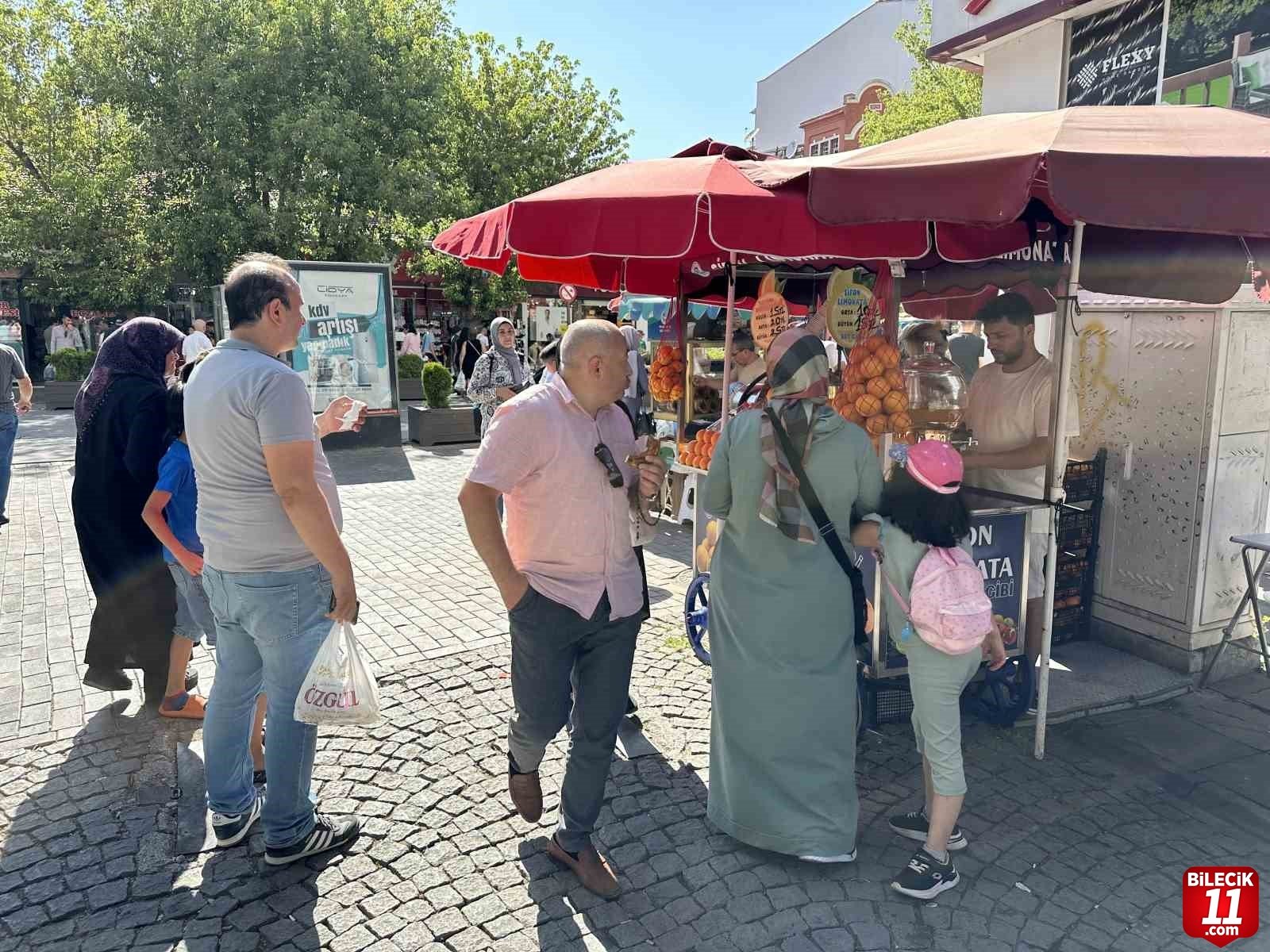 Eskişehir’de etkili olan kavurucu sıcak havada serinlemek isteyen vatandaşlar ‘sifon limonata’ içmek için sıraya giriyor.