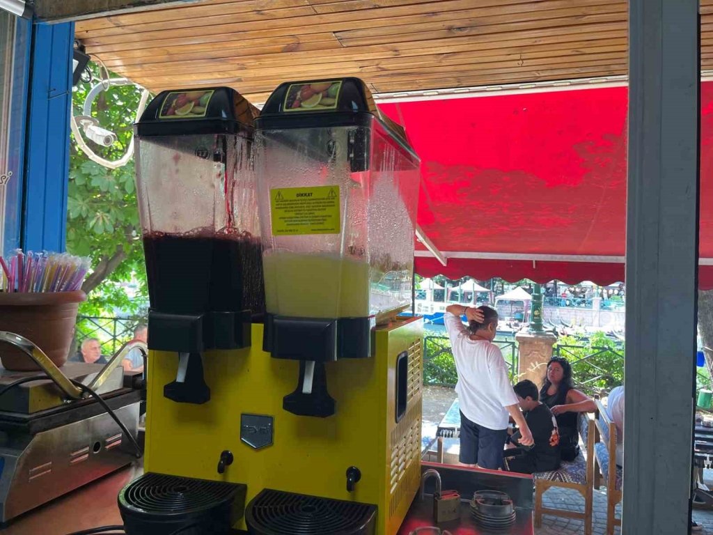 Sıcak havalarda satışlarıyla ilgili konuşan Hulusi Günaydın, “Havalar gerçekten çok sıcak, çalışırken zaman zaman zorlanabiliyoruz. Müşterilerimiz genellikle tatbiki soğuk su isteği çok oluyor. Suyun yanı sıra limonata ve karadut suyu da oldukça tercih edilen ürünlerimiz. Limonatanın bardağı 50 liradan, madensuyu ve limon karışımı ise 30 liradan satıyoruz” dedi. – İHA