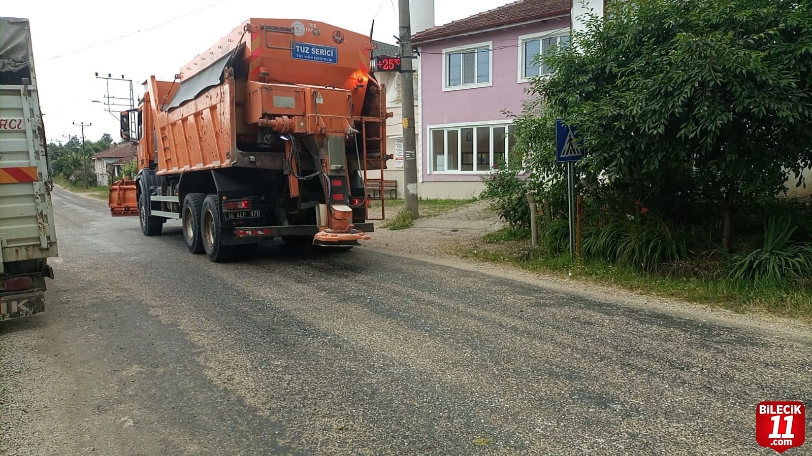 Bilecik ve ilçelerinde son günlerde artan hava sıcaklığı asfaltlarda erimeler meydana gelirken, o bölgelere Karayolları ekiplerince mıcır döküldü.