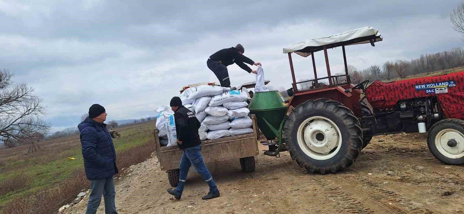 İl ve İlçe Tarım Müdürlüğü teknik personeli koordinasyonunda mera ıslah çalışmaları çerçevesinde Güney Beldesinde yaklaşık 1000 dekar mera alanına 9 bin 540 kilogram amonyum nitrat gübresi atıldı. – İHA
