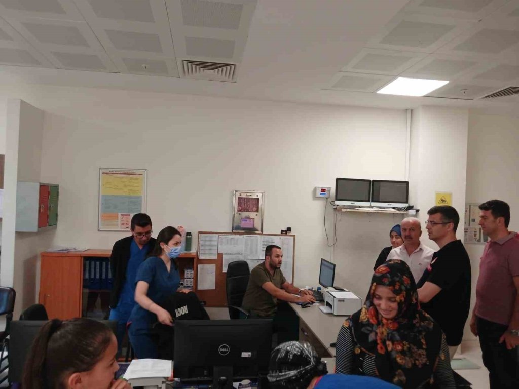 Poliklinikler, yataklı tedavi bölümleri ve tetkik ünitelerinde inceleme yapan ekip, çalışmalarla ilgili personel ve idarecilerden bilgi alıp değerlendirmelerde bulundu. Korkmaz ve Koyuncu, çalışmalar ve işleyiş ile ilgili personel ile fikir alışverişinde bulundu. – İHA
