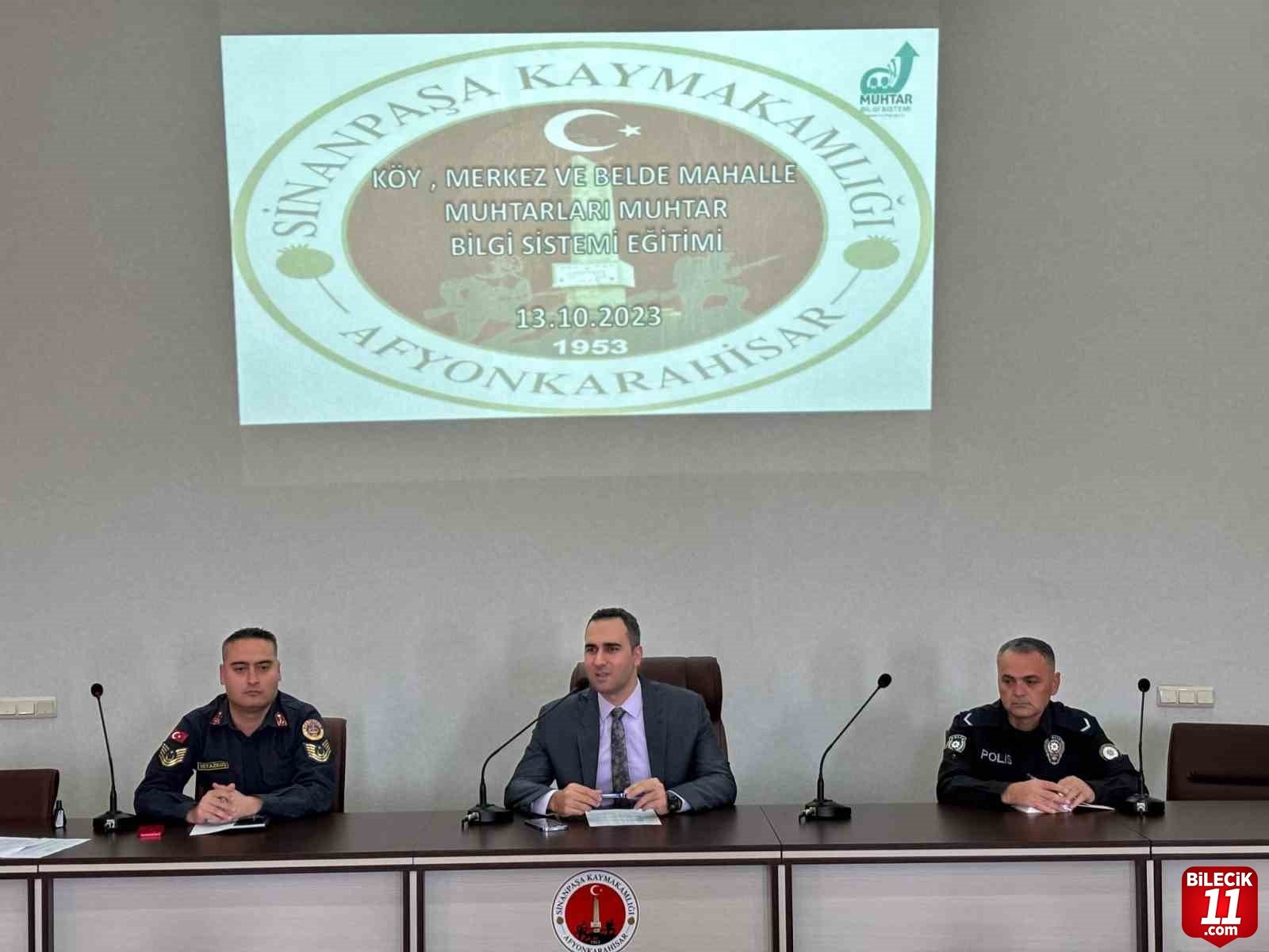 Afyonkarahisar Sinanpaşa Kaymakamı Yaşar Artar Muhtarlarla istişare toplantısı düzenledi toplantının ardından muhtarlara eğitim verildi.