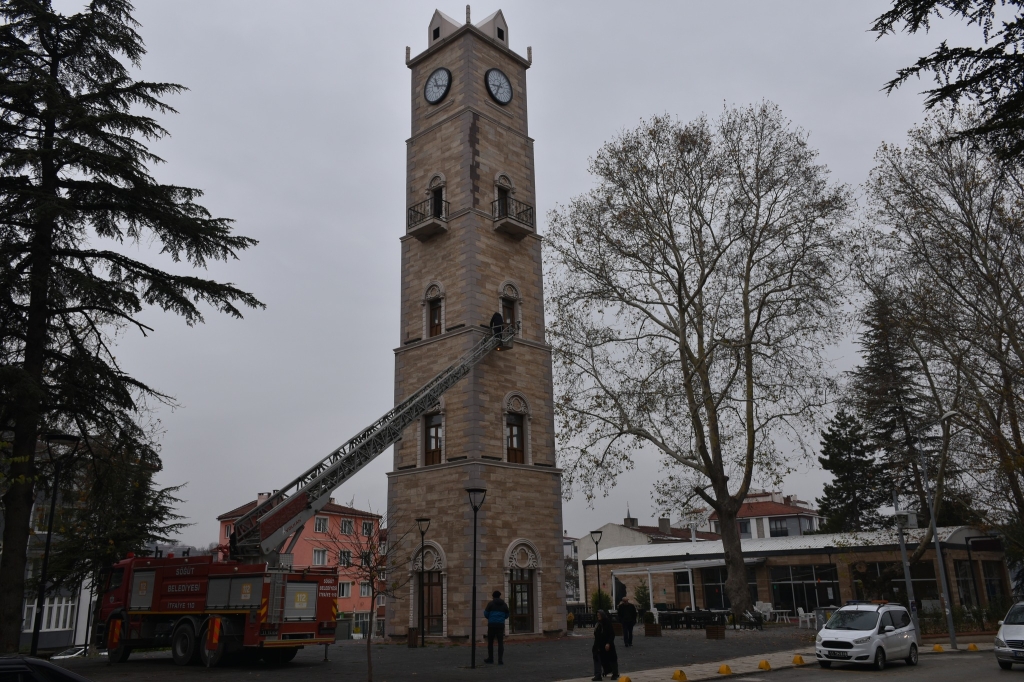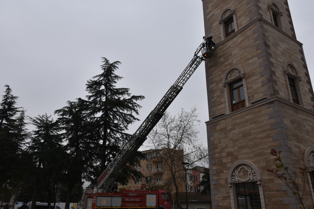 Söğüt ilçesinde bulunan saat kulesinde aydınlatma çalışmaları yapıldı.