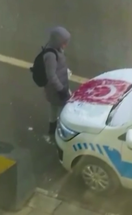 Bilecik’in Söğüt ilçesinde polis aracında bulunan Türk Bayrağı’nı kaplayan karları elleriyle temzilerken kameralara yansıyan çocuğun görüntüleri herkesin içini ısıttı.