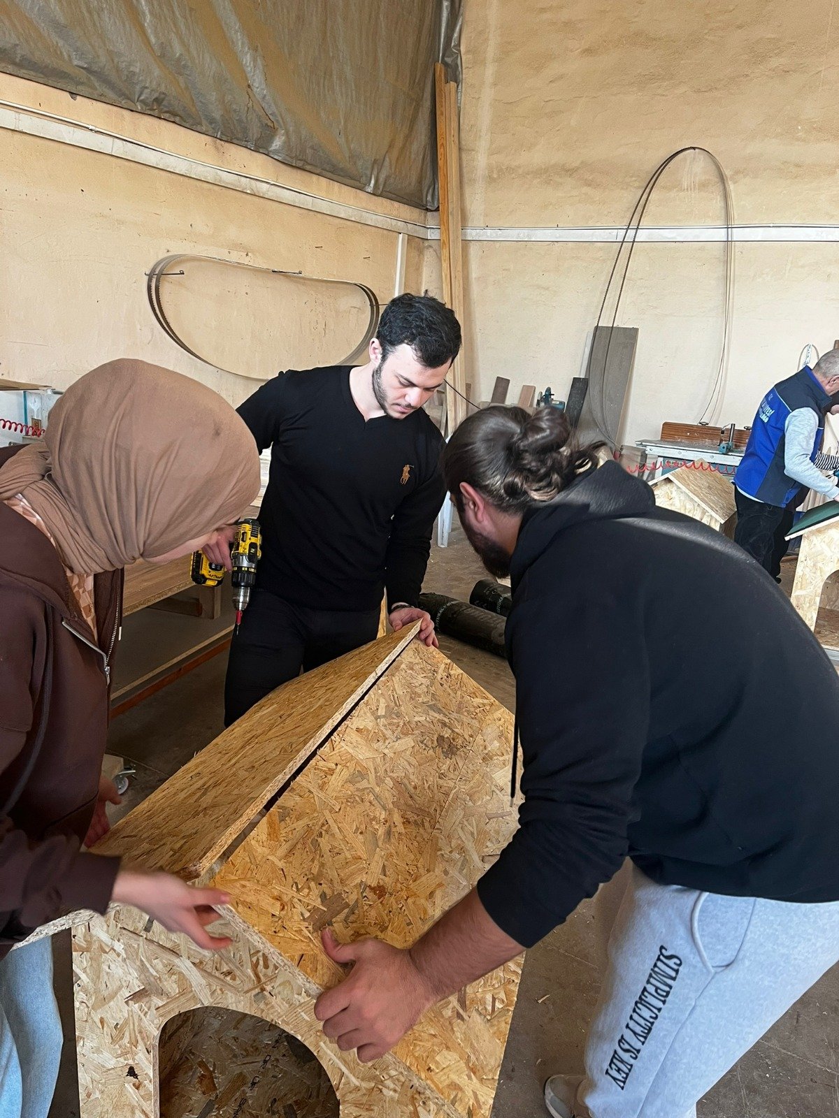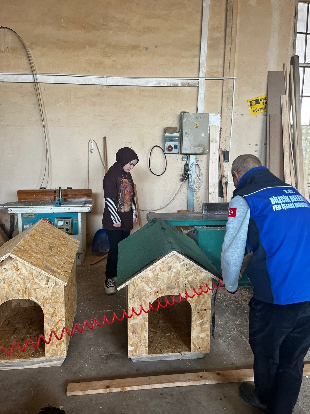 Bilecik Belediyesi atölyesinde Şeyh Edebali Üniversitesi Sosyal Hizmet Kulübü öğrencilerinin de desteğiyle sokakta kalan 10 kesi ve köpek için kulübe yapıldı.