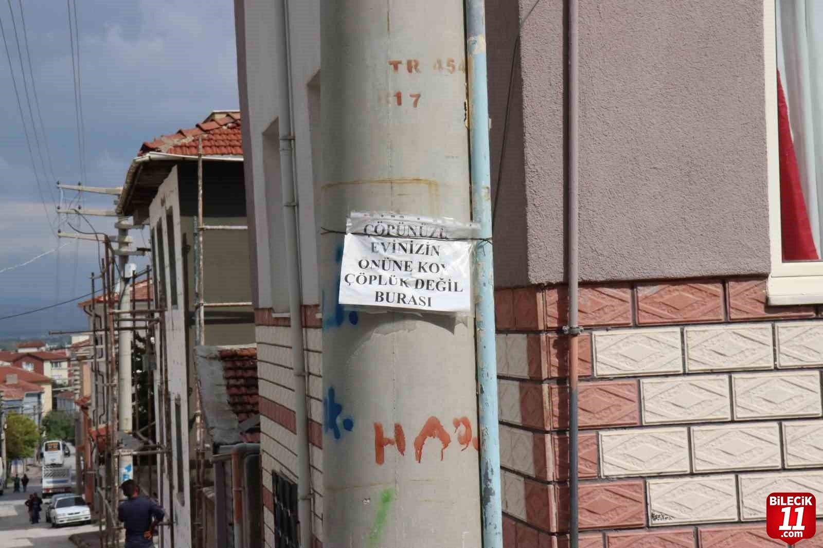 Eskişehir’in Odunpazarı ilçesinde çöp konteynırı sorunu gün geçtikçe artmaya devam ederken, vatandaşlar çözümü uyarı yazısı asmakta bulmaya çalışıyor.