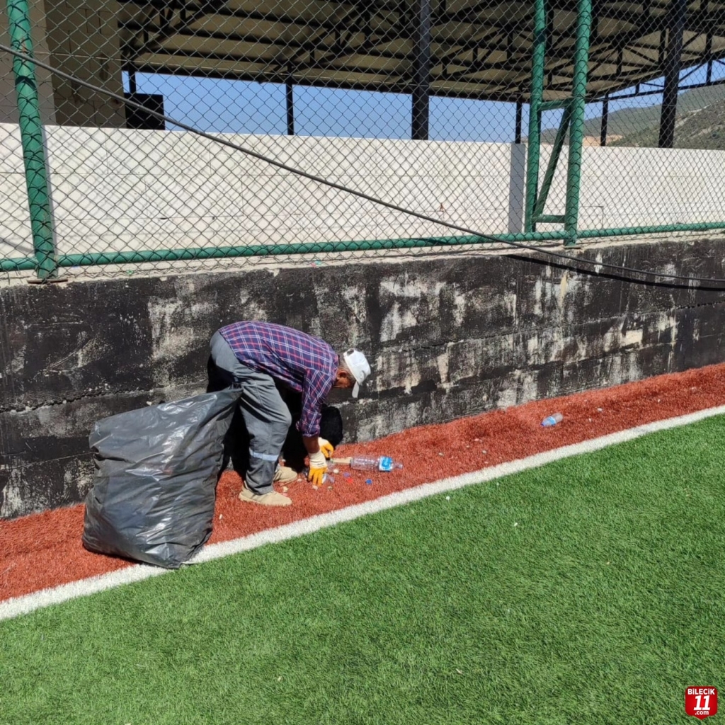 Bayırköy Belediyesi Belde’de bulunan spor tesislerinde temizlik çalışması gerçekleştirdi.