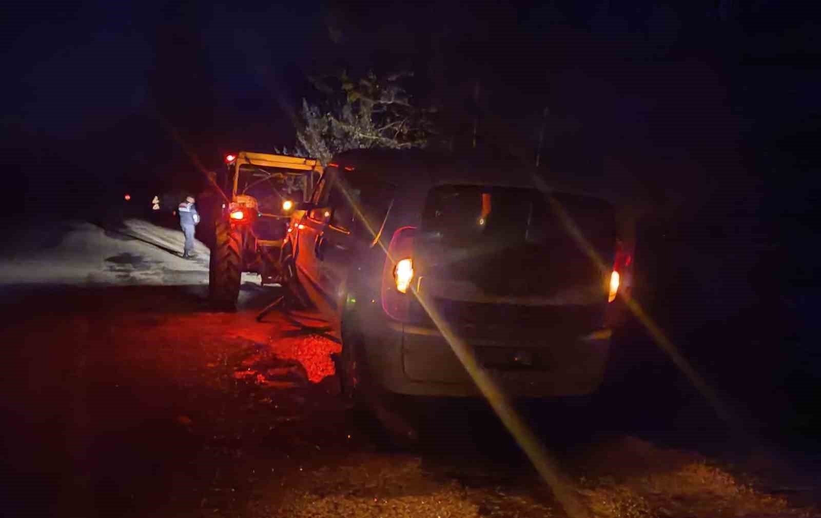 Araç, Dereköy kavşağında aynı istikamette seğir halindeki 11 EE 368 plakalı traktörün arkasında odun taşımak için kullanılan römorka arkadan çarptı.