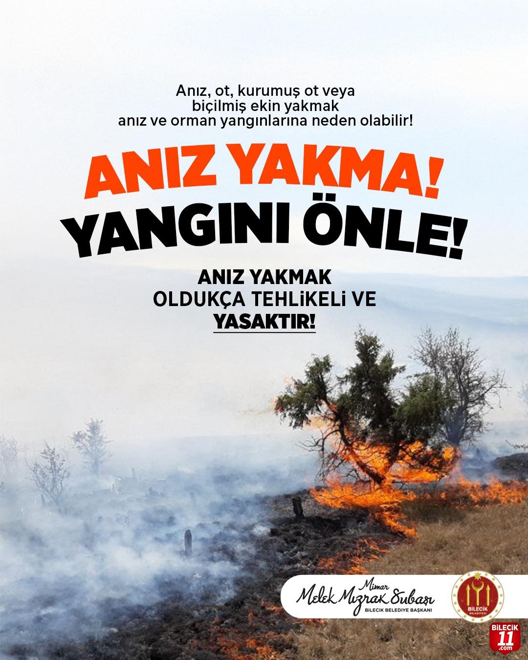 “Anız Yakmak Oldukça Tehlikeli ve Yasaktır! Anız, ot, kurumuş ot veya biçilmiş ekin yakmak anız ve orman yangınlarına neden olabilir!”