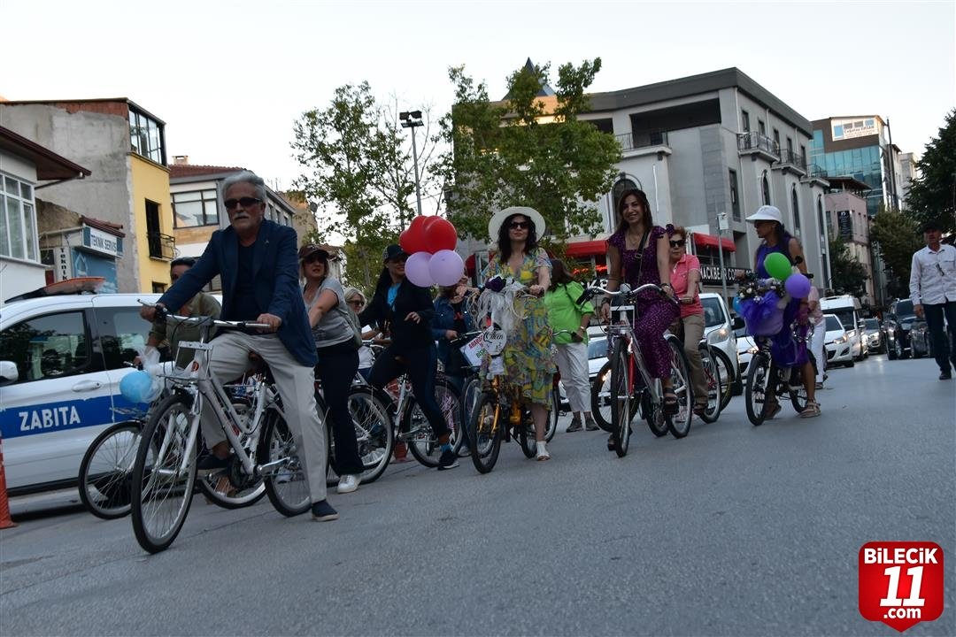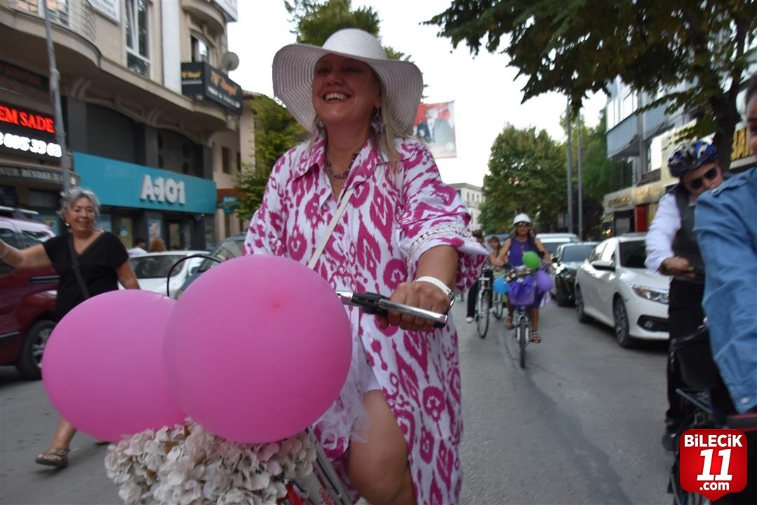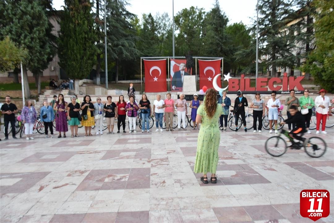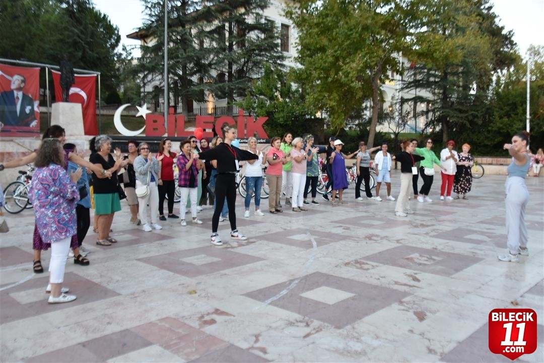 Şarkılar eşliğinde pedala basan kadınlar, Bilecik caddelerinde renkli görüntüler oluştururken, etkinlik Cumhuriyet Meydanında yoğa ve dans gösterileri ile son buldu.