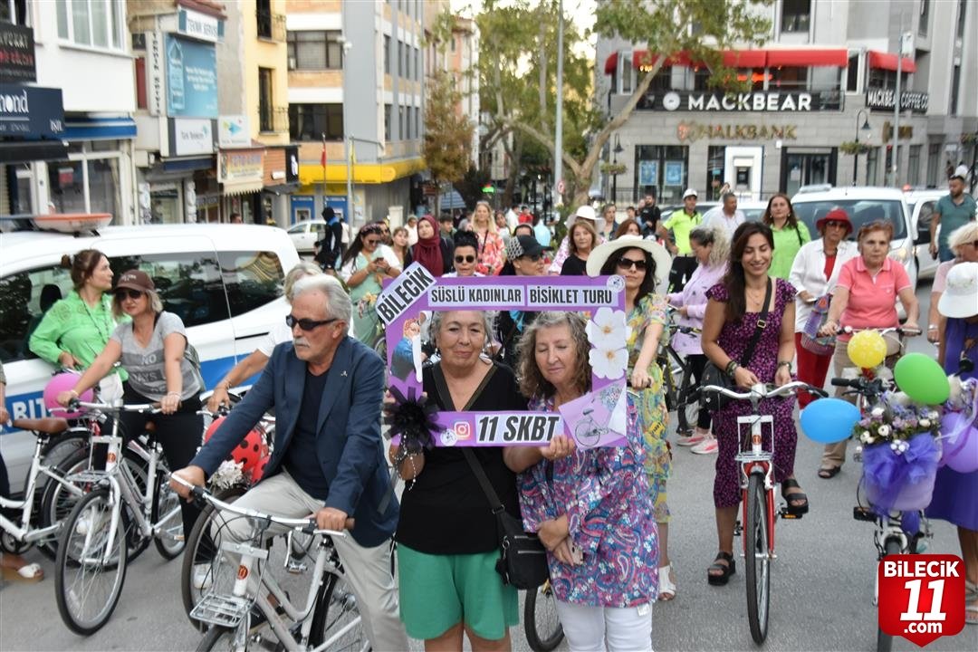 Burada, “Neden Süslü Kadınlar Bisiklet Turu?” diyerek konuşmasına başlayan organizatör Ayşenur Çelik şunları ifade etti: “2013 yılından buyana İzmir’den Dünya’ya açılan kapının Gönüllü Bilecik Süslüleriyiz. Süslü kelimesini yadırgayabilirsiniz. Lakin “Dünya Otomobilsiz Kentler Günü” kapsamında bisikletin günlük hayatın bir parçası olmasına dikkat çekmek amacıyla düzenlenen Süslü Kadınlar Bisiklet Turu, kadınların toplumda daha fazla görünürlüğünü sağlamak, kendilerini temsil etmelerine fırsat vermek ve güvenli bisiklet sürmeye ilişkin altyapı talebini pekiştirmek için her yıl eylül ayının 3. Pazar günü tüm dünyada eş zamanlı düzenlenen bir harekettir.