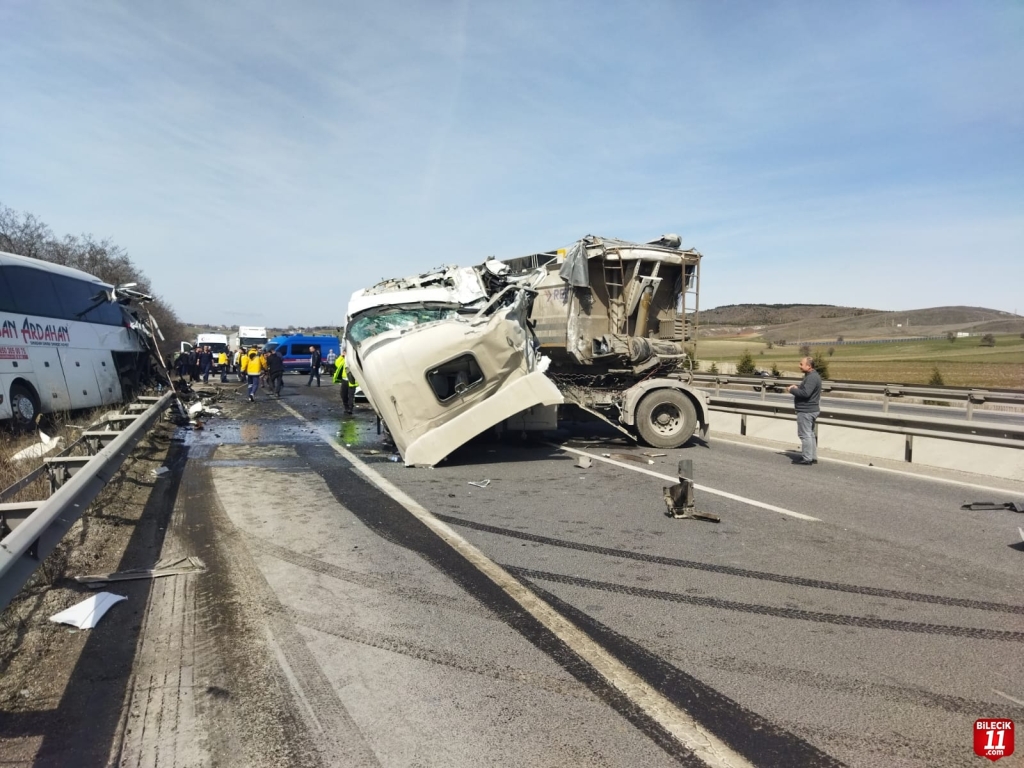 Bilecik’in Bozüyük ilçesinde, tırın yolcu otobüsüne arkadan çarptığı kazada yaralanan 11 kişi taburcu edildi.