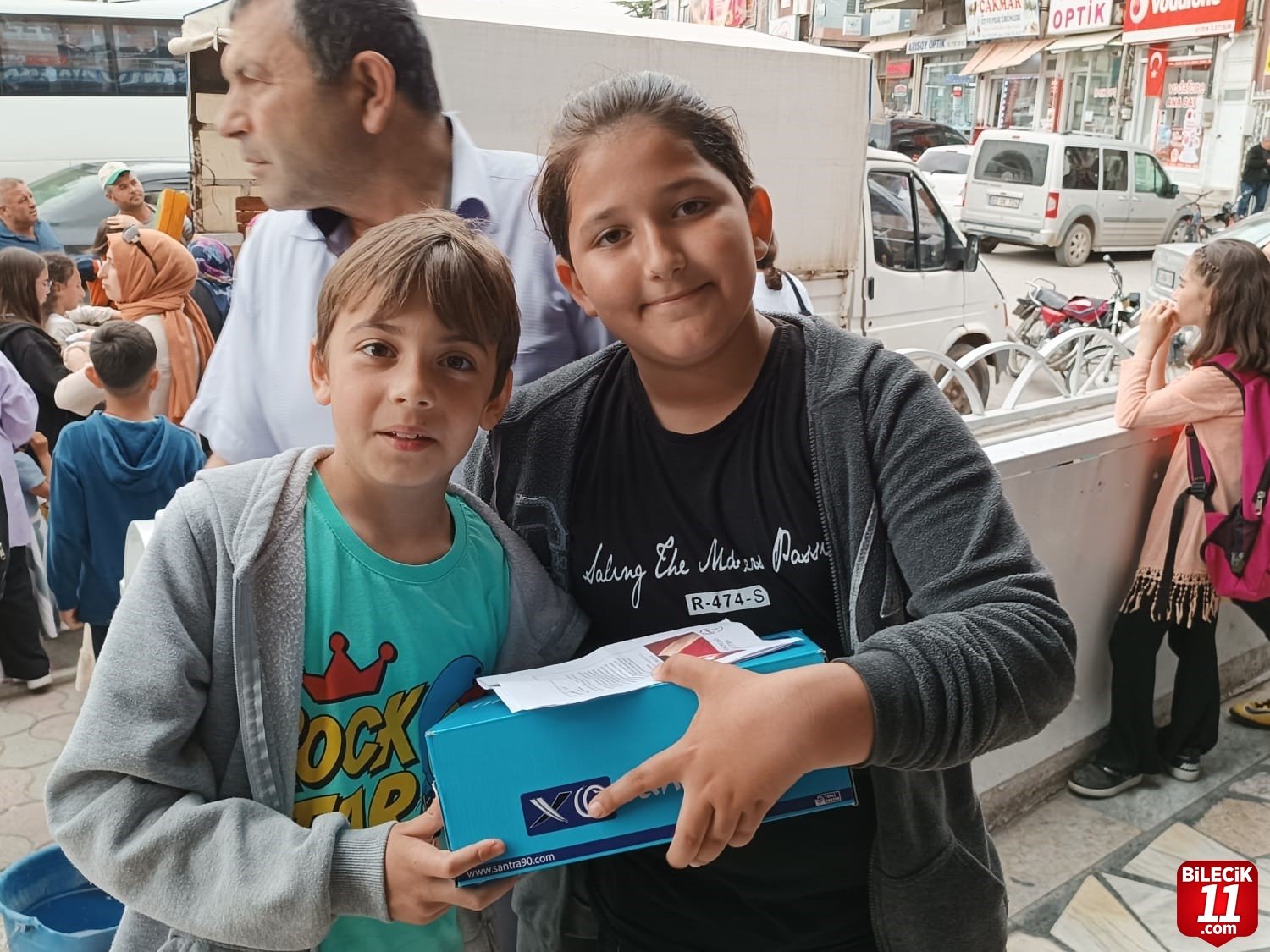 Afyonkarahisar’da hayırsever bir iş insanı takdir belgesini getiren öğrencilere ayakkabı hediye etti.