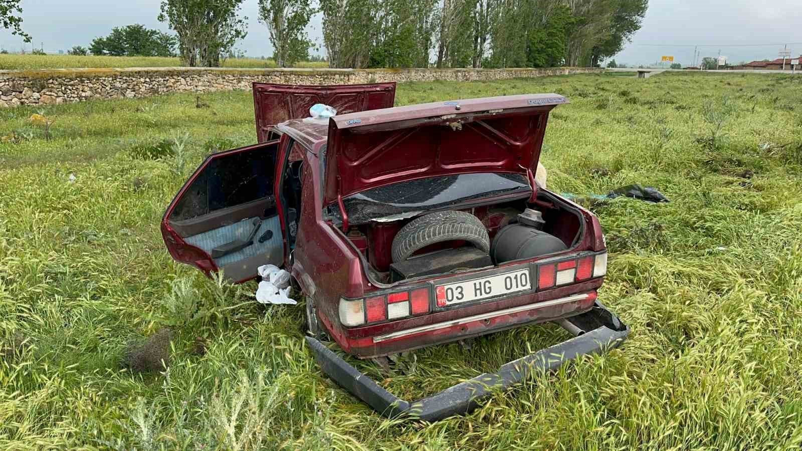 Afyonkarahisar’da kontrolden çıkan otomobilin taklalar atarak yol kenarındaki tarım arazisine girdiği kazada sürücü yaralandı.