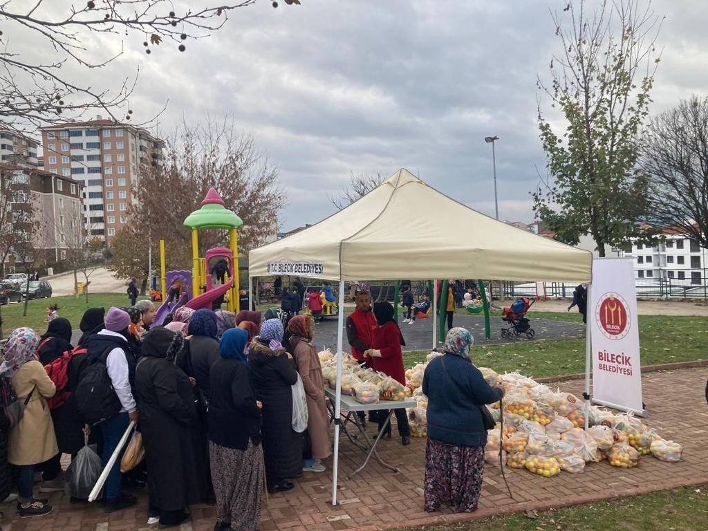 Bilecik Belediyesi ve Mezitli Belediyesi arasında yapılan işbirliğiyle poşetlerde hazırlanan yaklaşık 20 ton mandalina ve limonlar başta ihtiyaç sahibi olmak üzere vatandaşlara dağıtıldı.