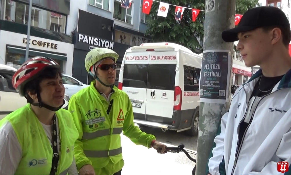 Daha sonra esnaf ve vatandaşlarla röportaj yaparak, tandem bisikleti hakkında bilgi verdi.
