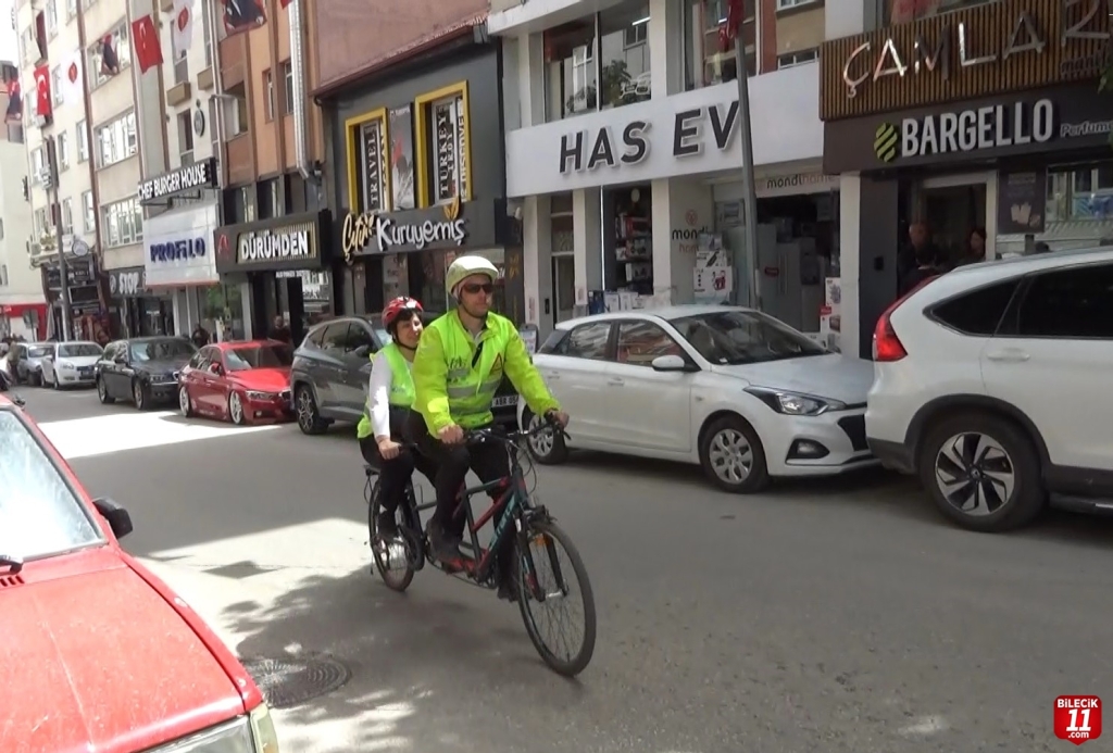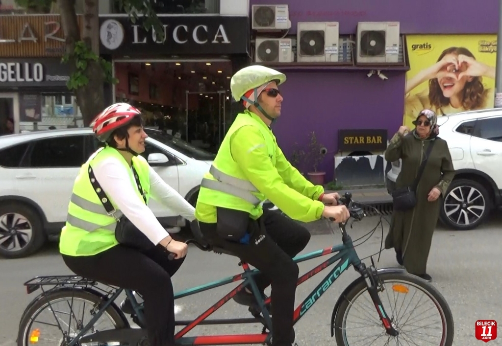 Doğuştan görme engelli Kent Konseyi Engelli Meclis Başkanı Çiler Kocaman, Bisikletliler Derneği Bilecik İl Temsilcisi Hakan Yavuz ile engelli bireylerin hayatını kolaylaştıracak “tandem bisiklet”le farkındalık oluşturmak amacıyla Tevfikbey Caddesi’nde bisikletle gezinti yaptı.