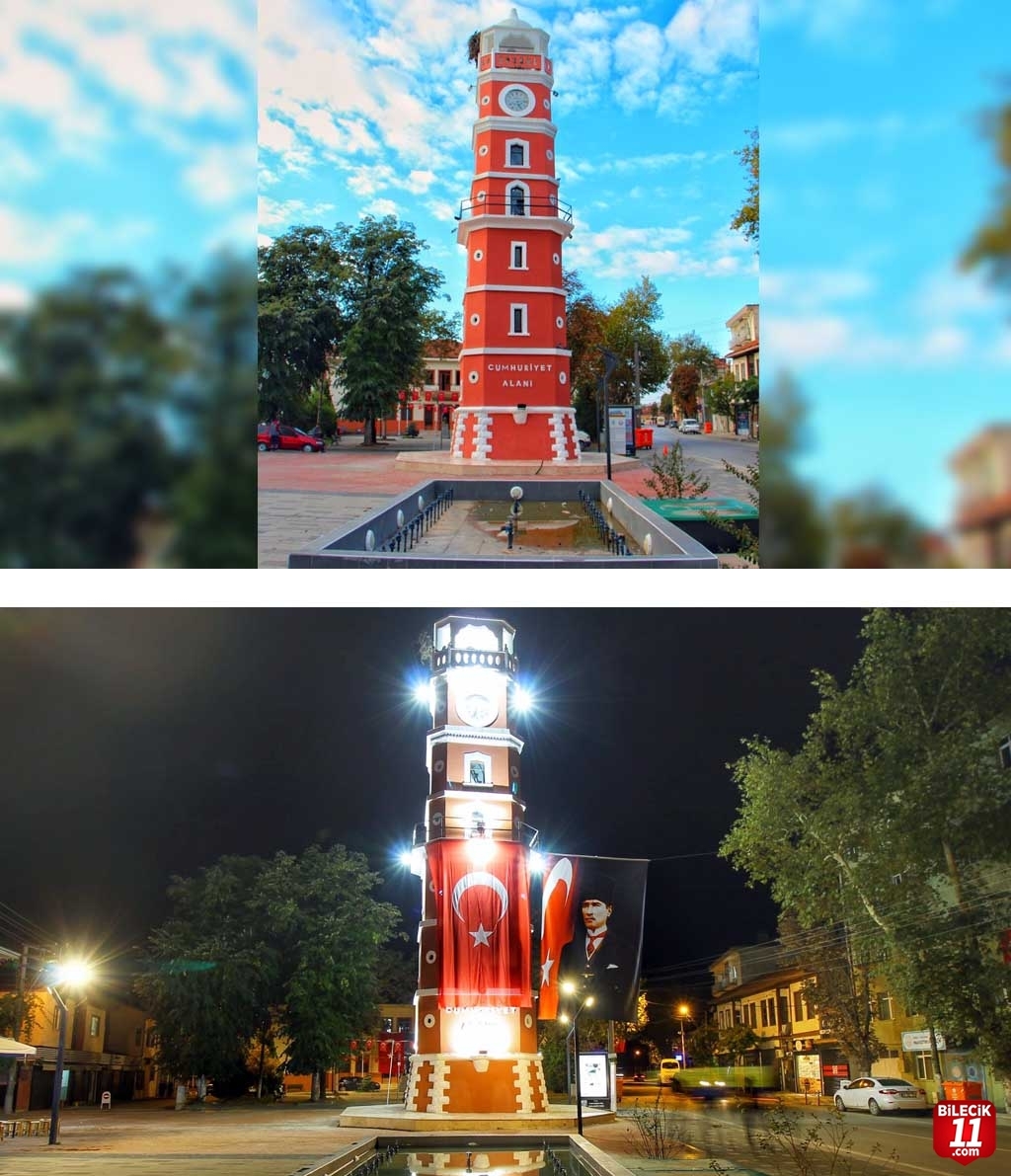 Yenişehir’de Cumhuriyet alanında Belediye Başkanı Mehmet Gökgöz zamanında 1932’de yapımına başlanıp 1936 sonlarında tamamlanan saat kulesi. Yapımcısı Halil Balcı adında bir mimar veya ustadır; ayrıca dönemin belediye çalışanlarından Rıfat ve Ahmet ustalar da yapım işinde çalışmışlardır. Giriş katından soma beş kat ve bir de yangın alarmı katı bulunmaktadır. Üçüncü katında çepeçevre bir balkonu vardır. Kule, her katından biraz daralmakta;