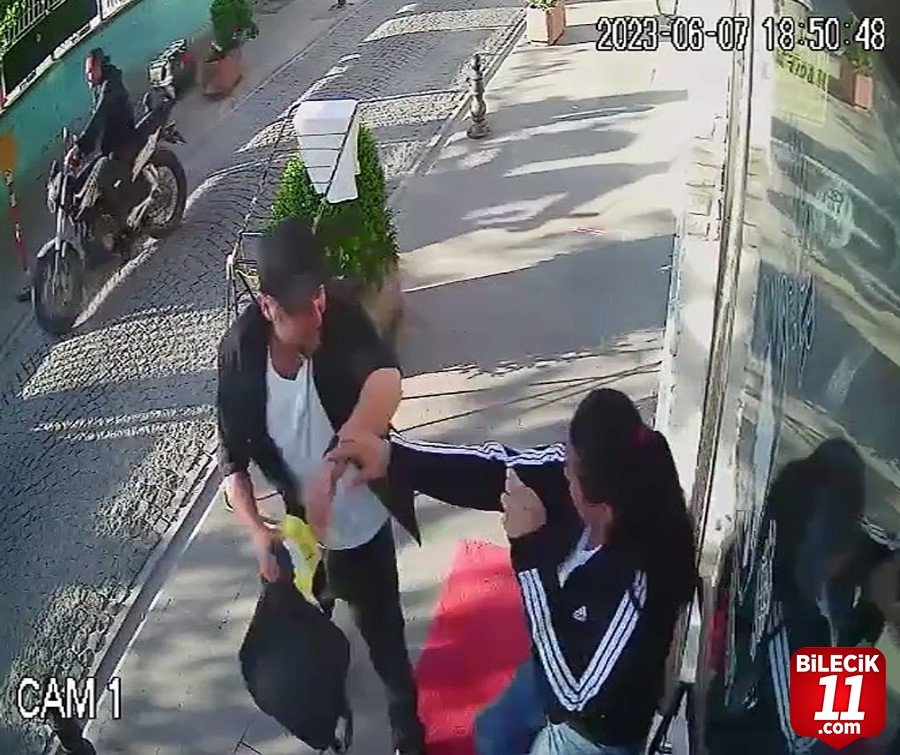 Yaşanan darp olayı sırasında kadının çantasını korumaya çalışma dikkat çekti.