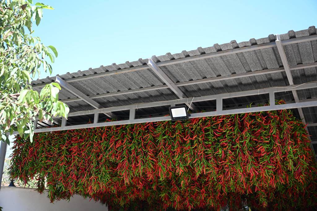 Yaklaşık 3 aylık olgunlaşma döneminin ardından toplanan biberler, ipe dizilerek gölgede kurumaya bırakıldı.