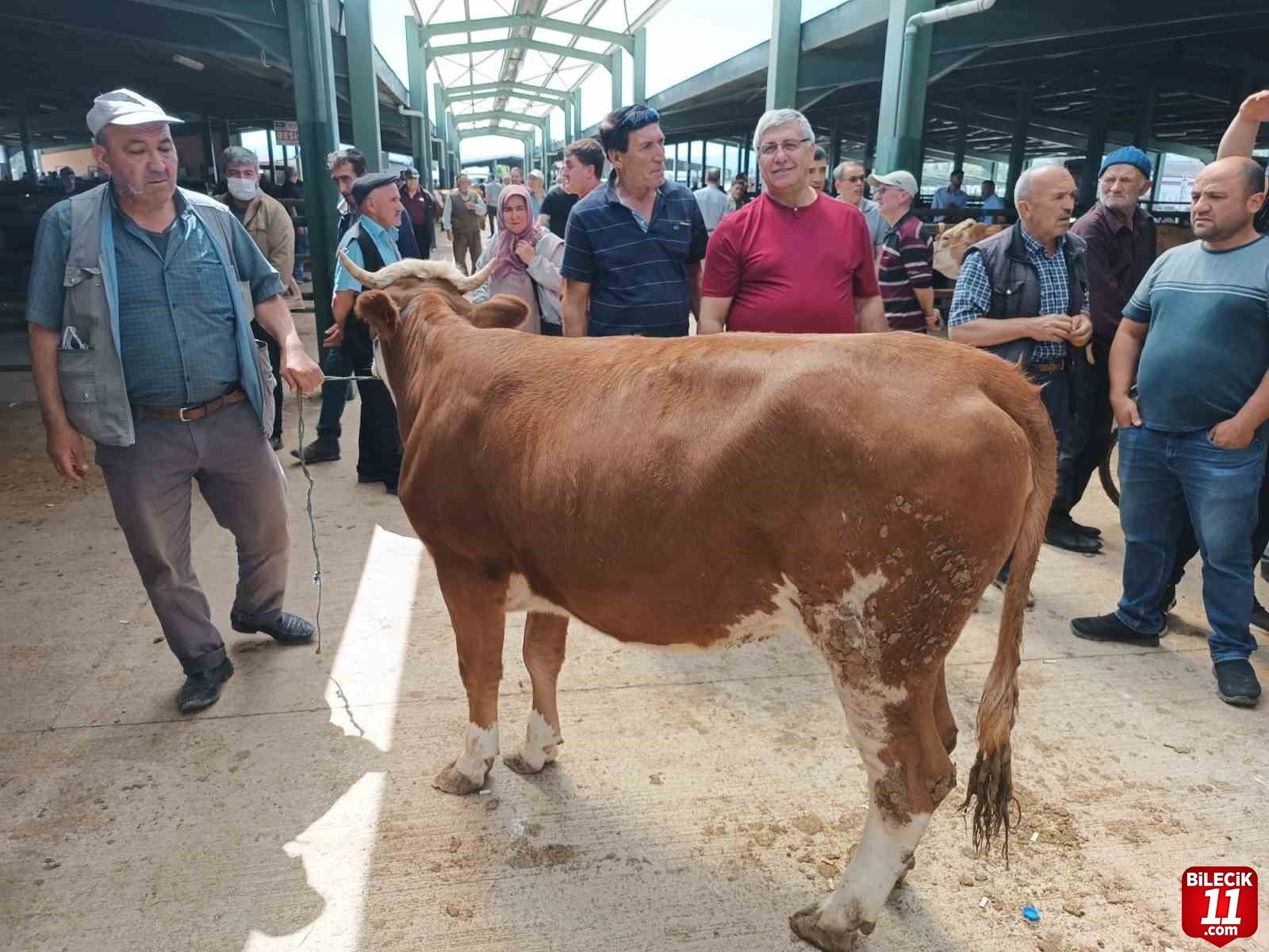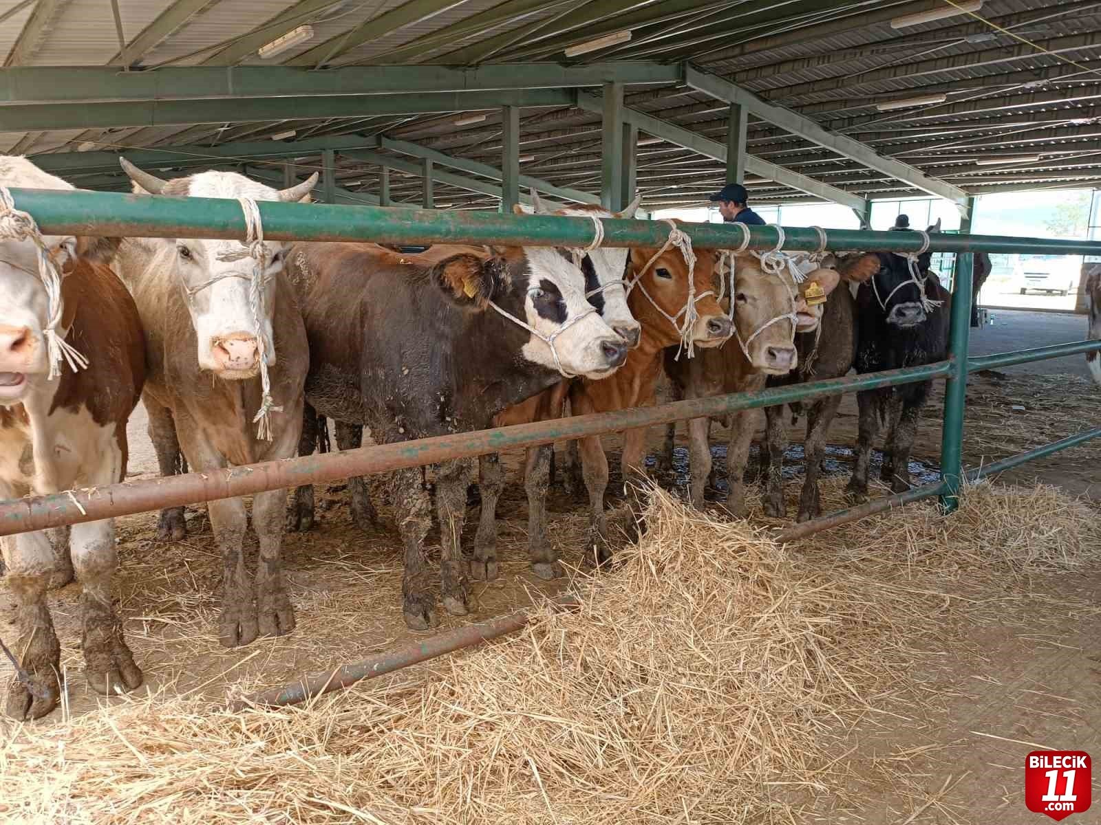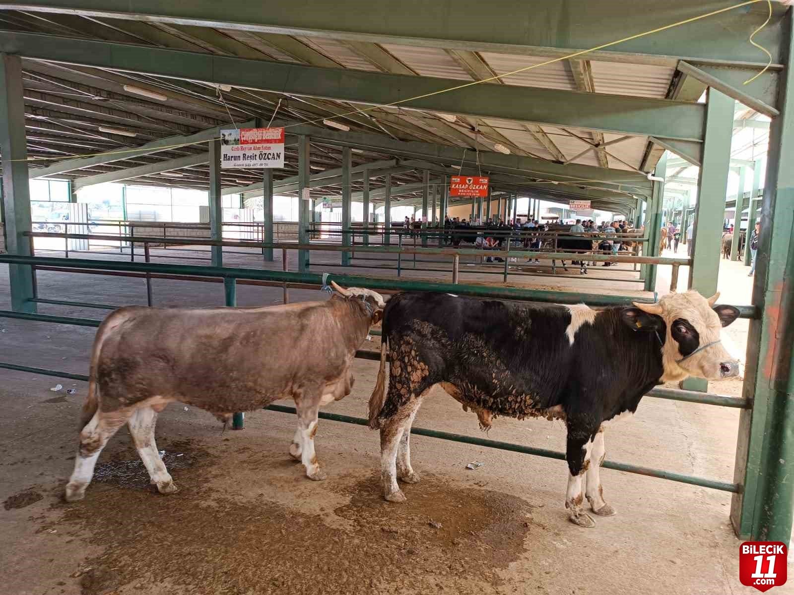 Bayrama kadar açık olan pazarda küçükbaş ve büyükbaş hayvanlar satış için gerekli evraklarının ve kontrollerinin ardından satış için hazır bekliyor.