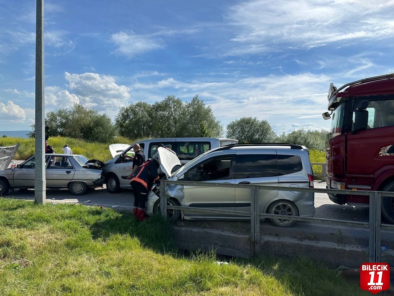 Kazaya karışanların ihbarı üzerine olay yerine 112 acil servis ekipleri, itfaiye ve polis ekipleri sevk edildi. Kazada 26 plakalı araç sürücüsü N.Y. ve yanında bulunan S.T. yaralanırken 5 araçta maddi hasar meydana geldi. 112 acil servis ekipleri yaralılara olay yerinde ilk müdahalesinin ardından Tavşanlı Doç. Dr. Mustafa Kalemli Devlet Hastanesine sevk edildi.