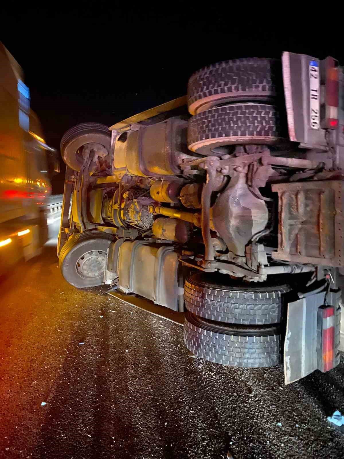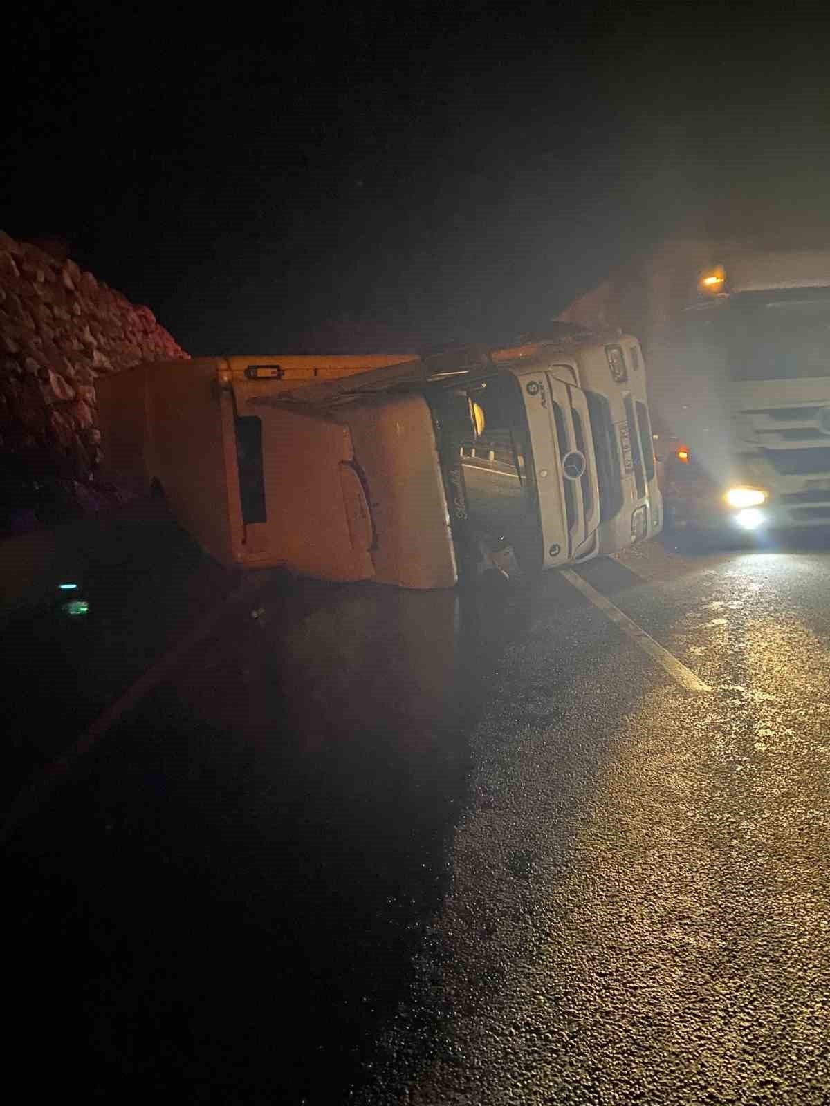 Bilecik’te seyir halinde devrilen paket tavuk yüklü tırın sürücüsü yaralanırken, kapanana yolda uzun araç kuyrukları oluştu.