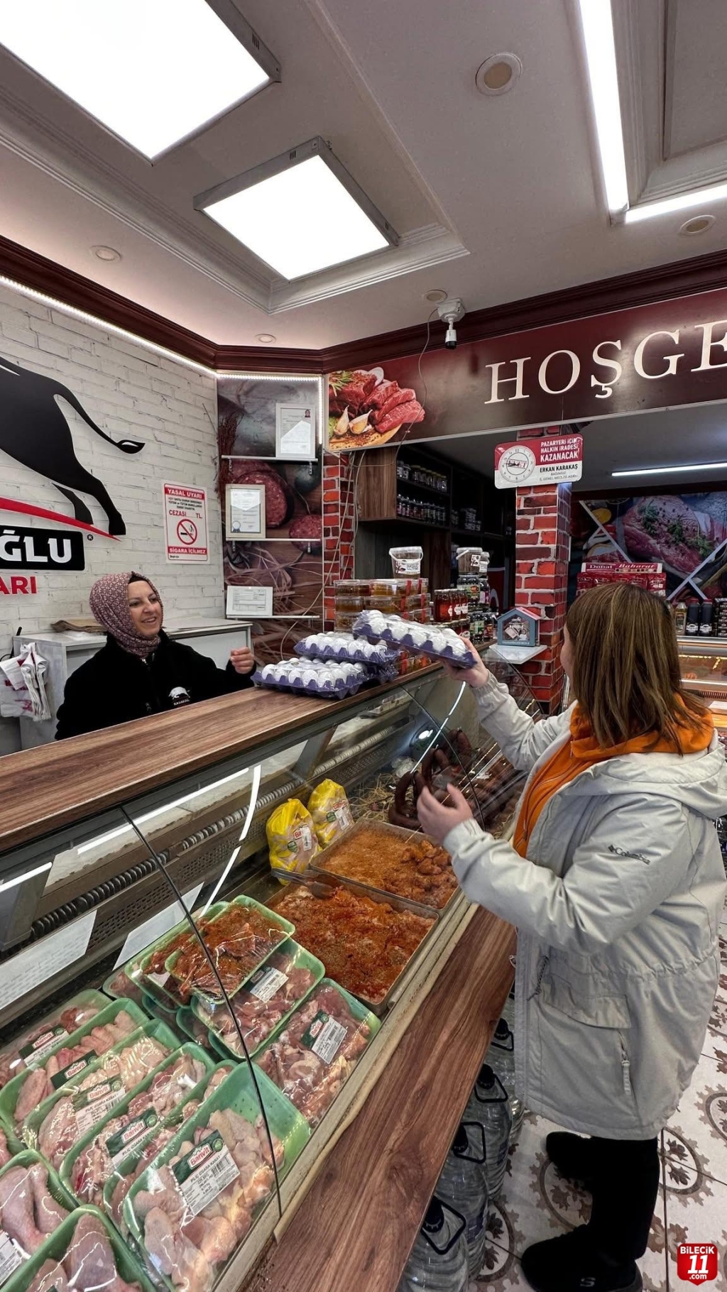 İlçe’deki esnaflardan alışveriş yaparak boykota karşı olduğunu belirten Başkan Tekin, kasaptan bakkala, Fırından, kahveye ve lokantaya kadar esanaflardan alışveriş yaptı.