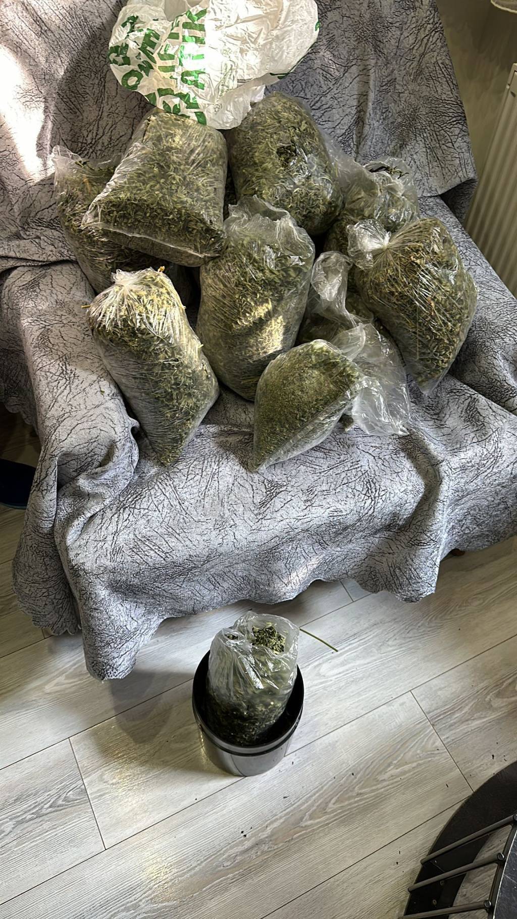 Evdeki aramada, iklimlendirme yöntemiyle yetiştirilmiş 71 kök Hint keneviri, 3 kilo 151 gram sentetik uyuşturucu, 51 gram kenevir tohumu, 2 iklimlendirme çadırı, nemlendirme cihazı, 2 klima, 2 vantilatör, 30 projektör ve hassas terazi ele geçirildi.