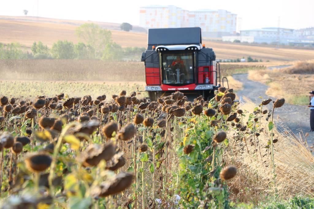 Tekirdağ'da yerli hibrit tohum üretimi ayçiçeği hasadı gerçekleştirildi.