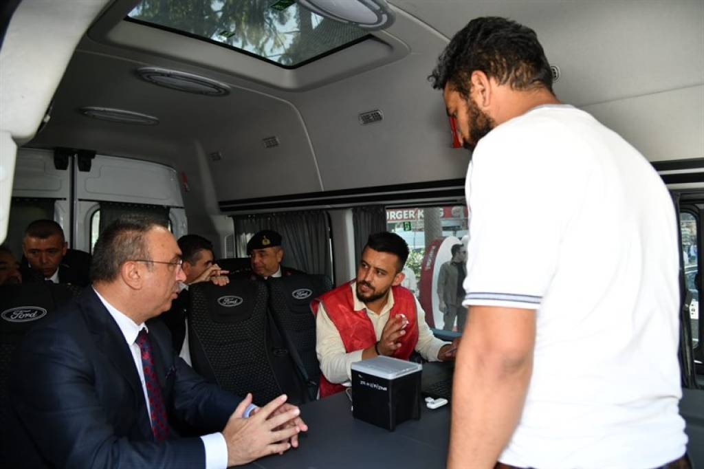 Tekirdağ Valisi Recep Soytürk, "Mobil Göç Noktası" aracını ziyaret etti.