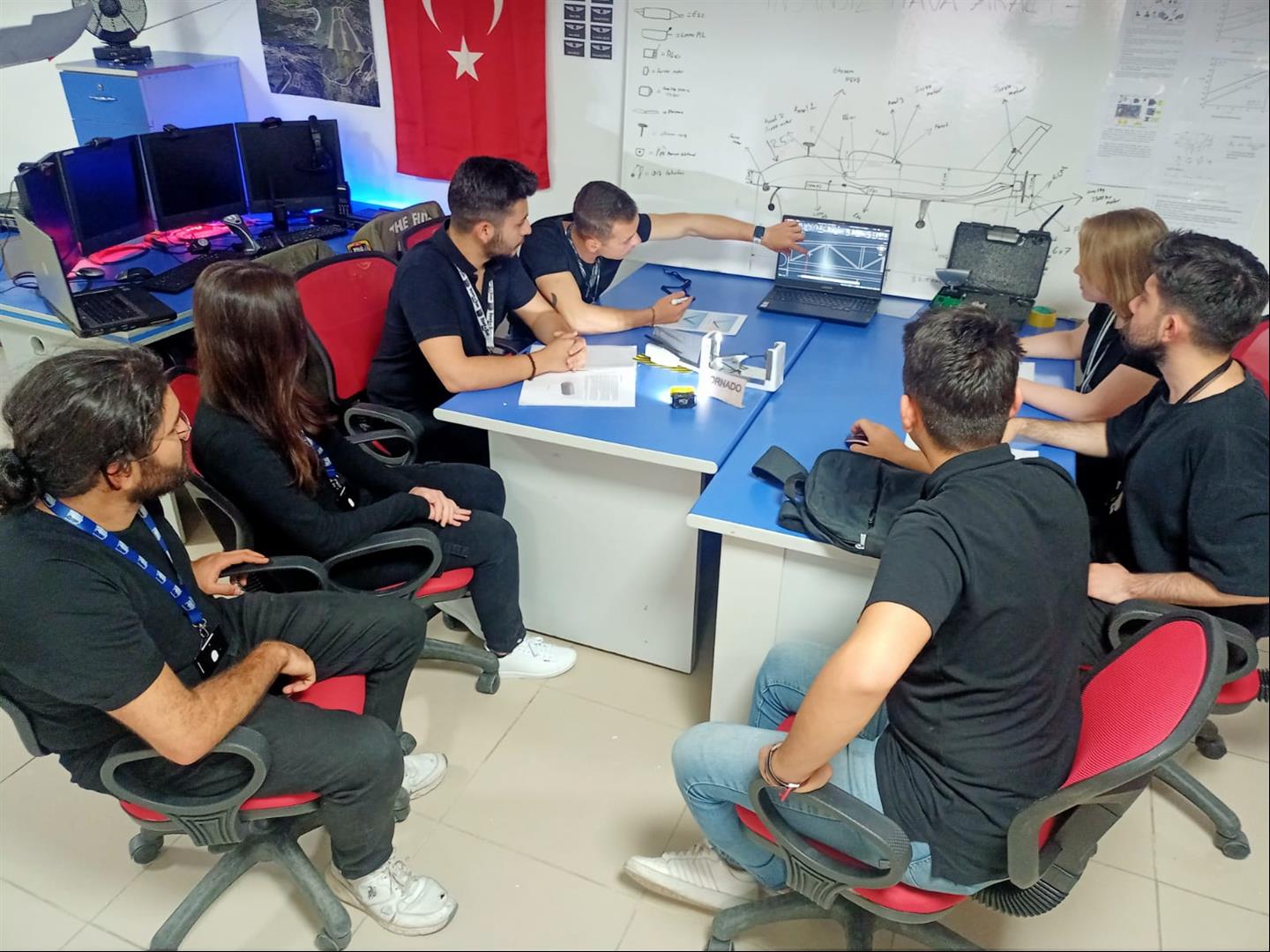 Ekip üyesi Abdurrahman Furkan Aşlak ve Kemal Tüysüz de “Tornado tasarım departmanında yer alan ekip arkadaşlarımızın bilgisayar ortamında tasarlandığı ihalarımızın teknik çizimleri ve 3 boyutlu çizimleri üretim departmanımıza ulaşıyor. Üretim departmanımız da ise insansız hava aracımızın (İha) kalıplarını üretip ardından iç elektrik akşam, motor ve pervanemizi de insansız hava aracımıza (İha) yerleştiriyoruz. Daha sonra montajımızı yapıp uçuşa hazır hale getiriyoruz. Uçuşa geçmeden önce insansız hava aracımızın (İha) montaj yapılan yerleri,iç elektrik aksamını ve motorların kontrolünü yaptıktan sonra insansız hava aracımız (İha) artık uçuşa hazırdır.” açıklamasında bulundular.