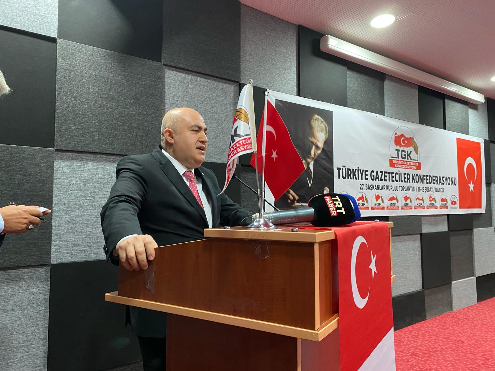 Türkiye Gazeteciler Konfederasyonu Genel Başkanı Nuri Kolaylı, ”Sayın Kütahya Valimiz Musa Işın ile güzel bir anımız oldu. İnşallah bundan sonraki Başkanlar Kurulunu Kütahya’da yapacağız. Son olarak Kilis’te bir araya gelmiştik. Kilis’ten sonra tekrar bir arada olmaktan gerçekten mutluyum. Araya pandemi girdi, bir sürü şeyler girdi. Ama işte yine bir aradayız. Yirmi yedinci kez toplandık.” dedi. Kolaylı, ”Bu toplantıya ev sahipliği yapan Bilecik Medya İletişim Derneği Başkanı ve Marmara Gazeteciler Federasyonu Genel Başkanı ve Basın İlan Kurumu Yönetim Kurulu üyesi sevgili kardeşim Mehmet Ergün’e kıymetli eşi Bilgen Hanım’a ve çalışma arkadaşlarına, başkanlarım adına içtenlikle teşekkür ediyorum.” diyerek devam ettiği konuşmasında Gazetecilik Yasasına acilen ihtiyaç duyulduğunu sözlerine ekledi.
