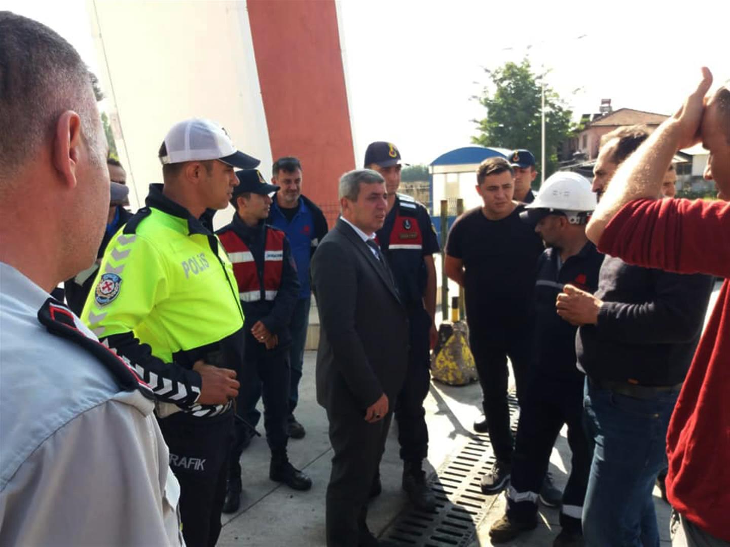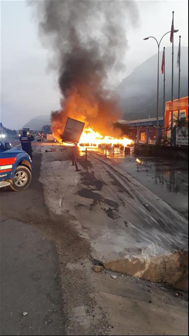 Durumu fark eden tır sürücüsü, yol kenarına çektiği tırdan indi.