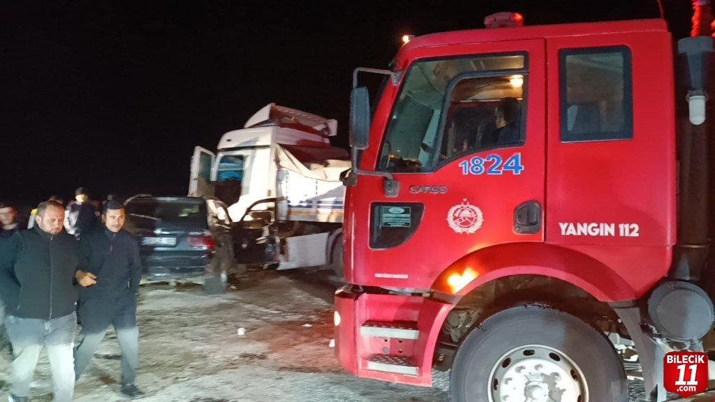 Tırla çarpışan otomobilde 3’ü polis memuru 4 kişi yaralandı