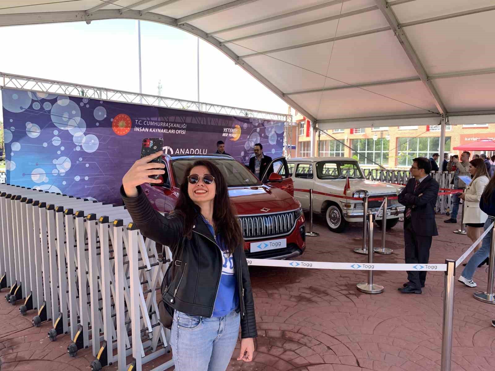 Yunus Emre Kampüsü’nde iki yerli aracı inceleyen Tuğbanur İnce, “Buraya gelmek çok güzel bir duygu. Daha önce de Devrim arabasını müzede görmüştüm, TOGG’uda incelemiştim. Burada arkadaşlarım araçlara yoğun ilgi gösterdiği için ben de tekrar gezmek istedim. Bir Türk olarak bu iki aracı yan yana görmek gurur verici” dedi.