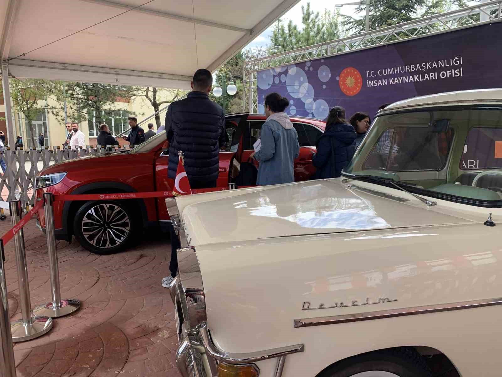 Anadolu Üniversitesi’nde gerçekleşen İç Anadolu Kariyer Fuarı’nda (İKAF’23) Yunus Emre Kampüsü’nde yan yana sergilenen TOGG ve Devrim otomobili, yerli-yabancı öğrencilerden büyük ilgi gördü.