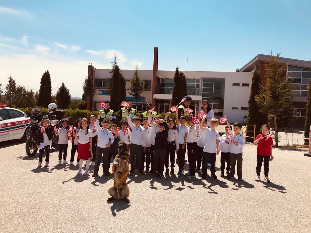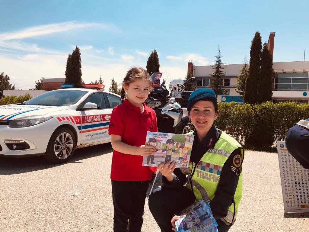 epebaşı İlçe Jandarma Komutanlığı’na bağlı Trafik Jandarma ekipleri, 6-12 Mayıs Trafik Haftası etkinlikleri çerçevesinde Eskişehir’de bulunan bir özel okulun öğrenci ve öğretmenlerine seminer verdi. ’Bu Yolda Sana Çok Güveniyoruz’ sloganıyla verilen eğitim, trafik güvenliği başta olmak üzere genel kurallar, emniyet kemeri, yaya önceliği ve okul servis araçlarında uyulması gereken kuralları barındırdı. Jandarma ekiplerince öğrencilere broşür, boyama kitabı, bayrak ve balon dağıtıldı. Bunun yanı sıra İl Jandarma Komutanlığı’nın köpek unsurlarıyla gösteriler yapıldı.