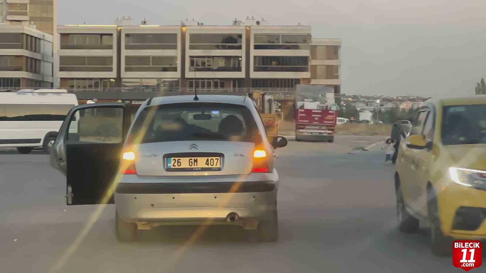 Eskişehir’de bir sürücü, otomobilinde taşımak istediği yükü aracına sığdıramayınca kapısı açık şekilde yolculuk ederek kazaya davetiye çıkardı.