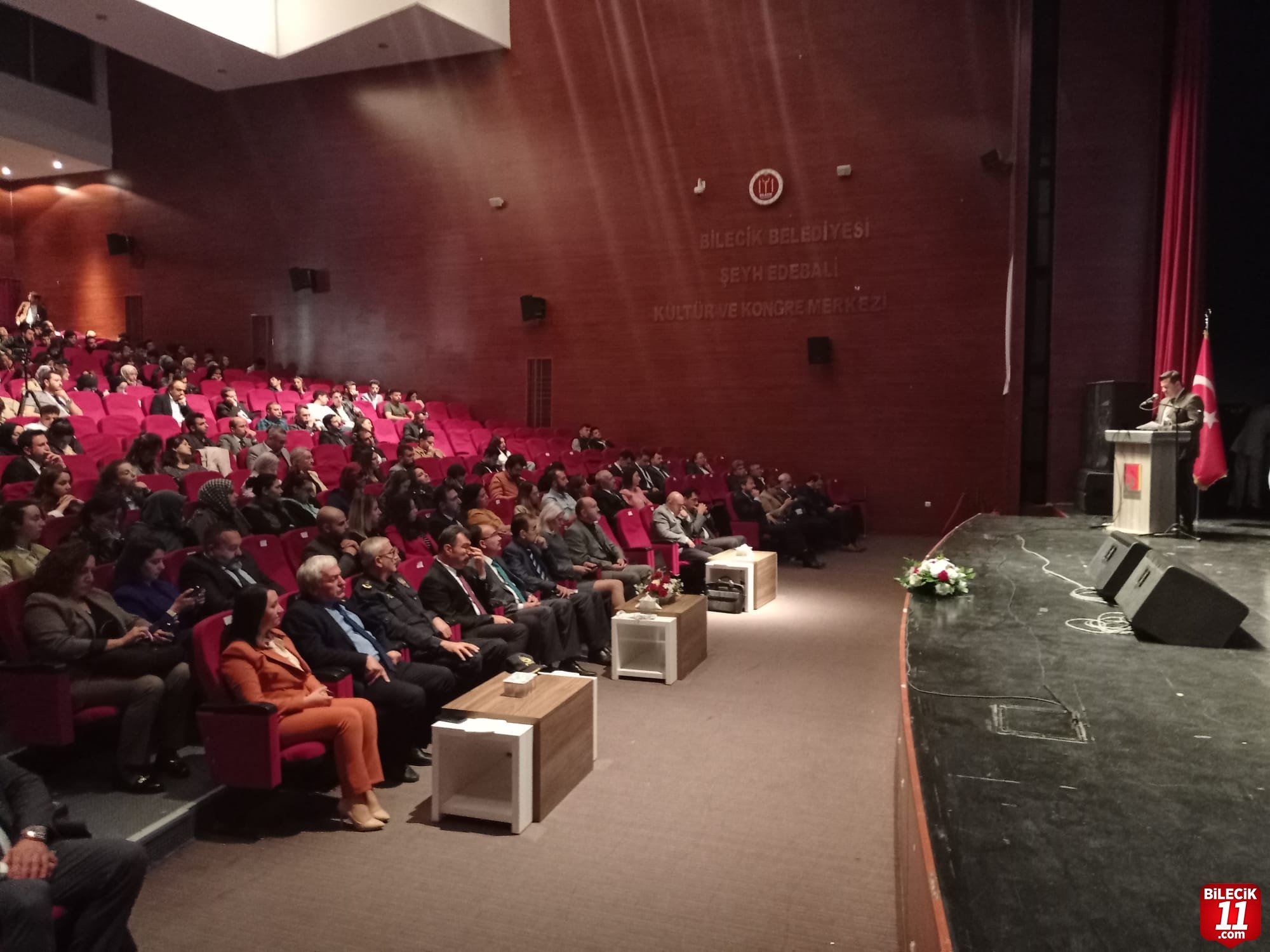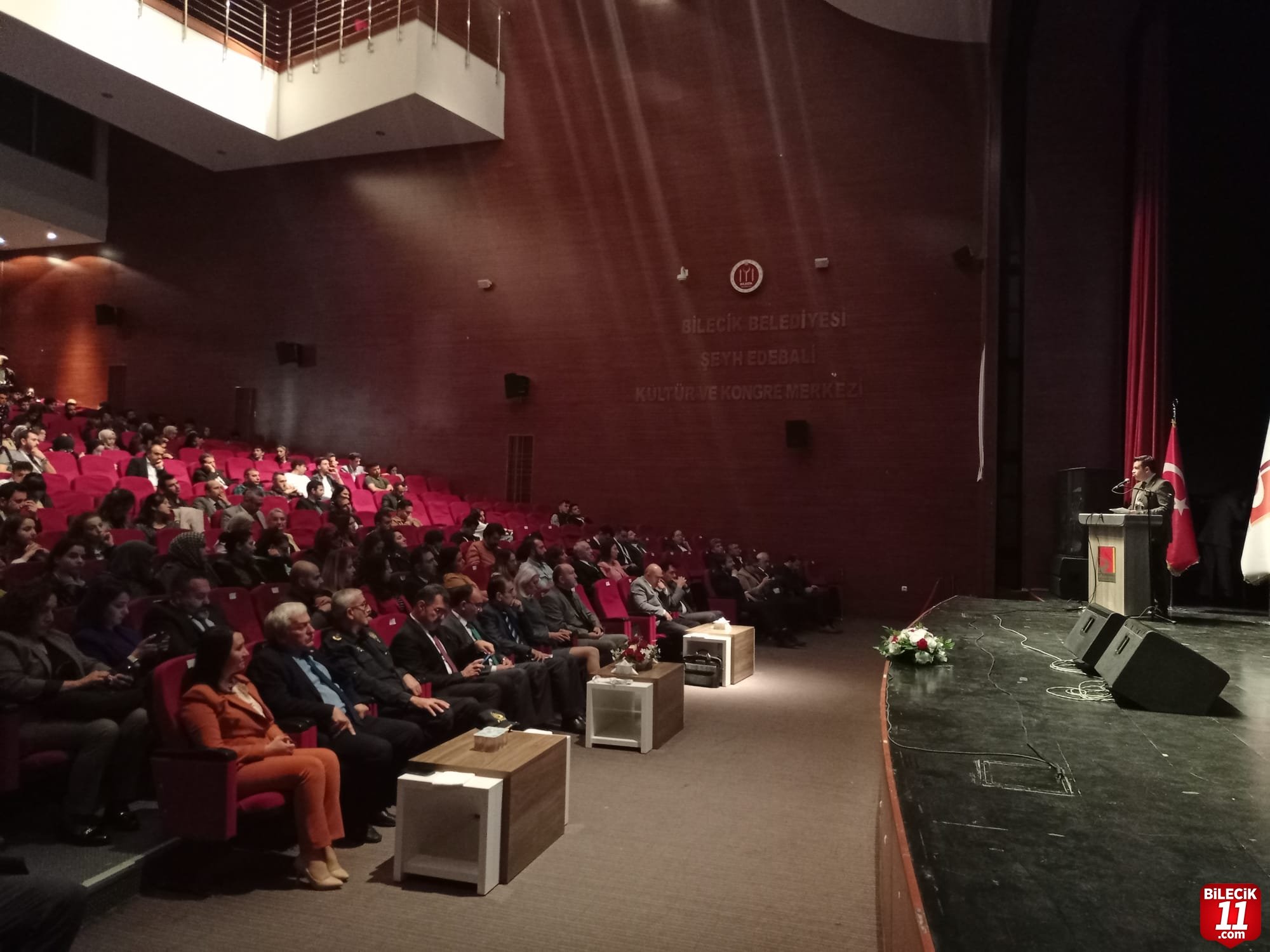 Şeyh Edebali Kültür ve Kongre Merkezi’nde saygı duruşu ve İstiklal Marşı’nın okunması sonrası Şeyh Edebali Üniversitesi’nin Tanıtımı Müzik Dinletisi ile başlayan program, konuşmalar ile devam etti.